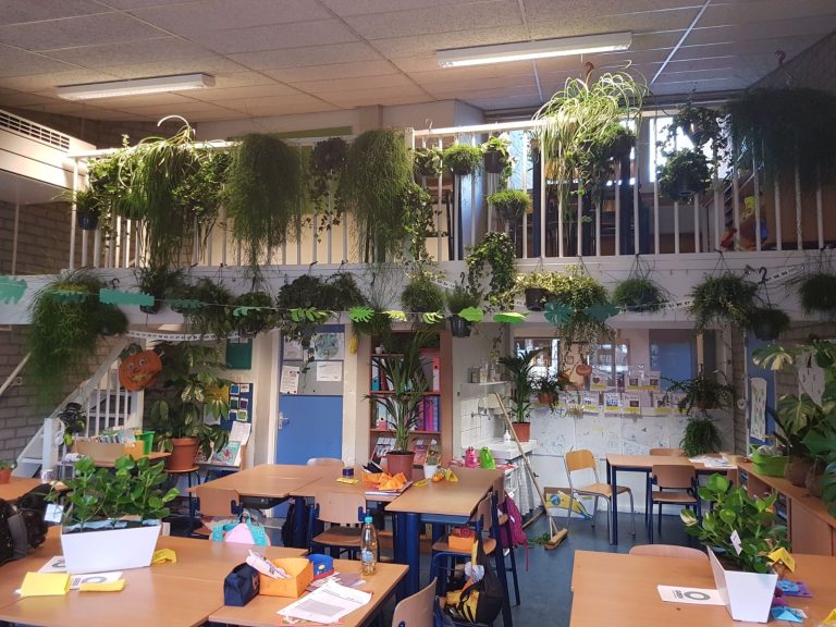 Veel Nederlandse scholen hebben nog steeds te maken met een slecht binnenklimaat. Het gevolg: een negatief effect op de aandacht en leerprestaties van leerlingen. Naast goed ventileren kan het vergroenen van de inrichting van het klaslokaal een positieve boost geven aan het binnenklimaat. Planten in de klas verbeteren de luchtkwaliteit, de leerprestaties en de waardering van leerlingen voor het leslokaal. Niet onbelangrijk, omdat kinderen gemiddeld 40% van hun tijd in een klaslokaal doorbrengen. Bovendien is aanleggen van een heus ‘Binnenbos’, een groen leslokaal, erg leuk én leerzaam voor de leerlingen.