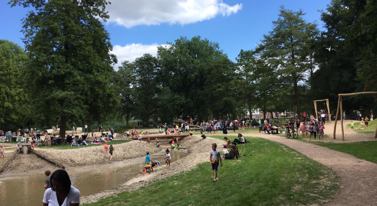 Marlies Bouman, projectleider namens Jantje Beton: ‘Het is echt een park van de buurt geworden. De eerste keer dat ik in het park rondliep was het op een verdwaalde fietser en hondenuitlater na uitgestorven. Nu zijn er altijd kinderen aan het spelen, mensen aan het wandelen. Op welk moment dan ook, zelfs als het regent.’