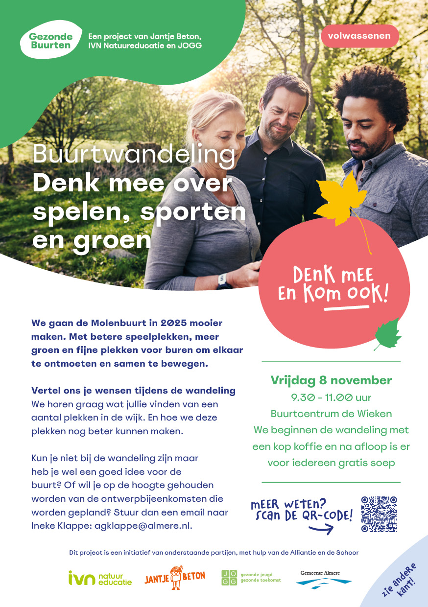 Vertel ons je wensen tijdens de buurtwandeling. We horen graag wat jullie vinden van een aantal plekken in de wijk. En hoe we deze plekken nog beter kunnen maken. We beginnen de wandeling met een kop koffie en na afloop is er voor iedereen gratis soep