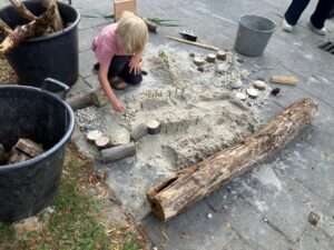 Donderdagmiddag 4 september organiseerden de gemeente Dronten bij de Spiegelstraat in Oud Dronten een droomsessie voor de drie achterliggende hofjes. Betrokken buurtbewoners vertelden hun ideeën voor de buurt. Soms met een mooie tekening of fotocollage erbij. Een aantal buurtkinderen gingen onder leiding van ontwerpbureau ANNO2000 creatief aan de slag met het maken van maquettes van zand, takjes en bladeren om zo hun droomontwerp te laten zien.