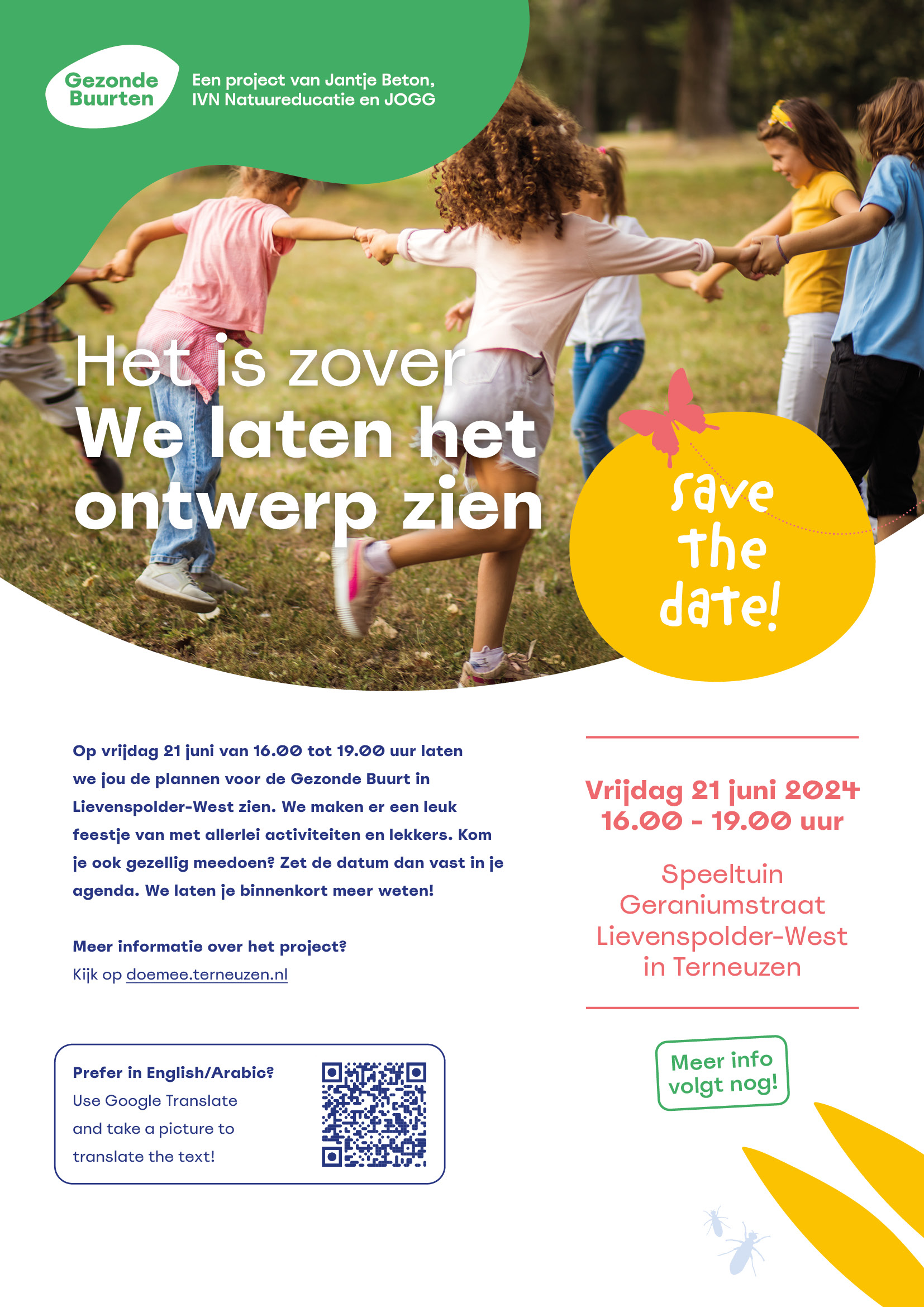 Noteer je alvast de datum? Want dankzij al jullie goeie ideeën hebben we een ontwerp kunnen maken. We zijn heel benieuwd wat de buurt ervan vindt. Kom je langs? Het wordt sowieso gezellig en er is van alles te doen.
