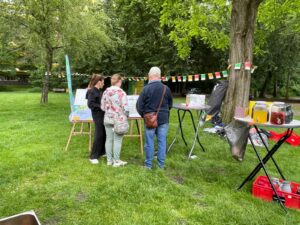 Ondanks de regen hadden we op donderdagmiddag 25 april 2024 een geslaagde ontwerpsessie met zeker 15 volwassen buurtbewoners en zo’n 20 kinderen. Met verschillende plaatjes van alle eerder ingediende ideeën (zoals schommels, toegankelijke picknickbanken, bloemstroken en meer natuureducatie) konden buurtbewoners zelf kiezen welke soort hen het meest aansprak en op de plattegrond van het park plakken. Leuk om te zien dat iedereen zo enthousiast aan het ontwerpen was! Ook de workshop zaadbommen maken was een succes, er liepen daarna een boel kinderen met modderhanden rond. En Gennaro van Sportief Zeist zorgde voor een fanatieke bootcamples. Na het harde werken werd er gesmuld van de vega/halal hotdogs uit de bakfiets.