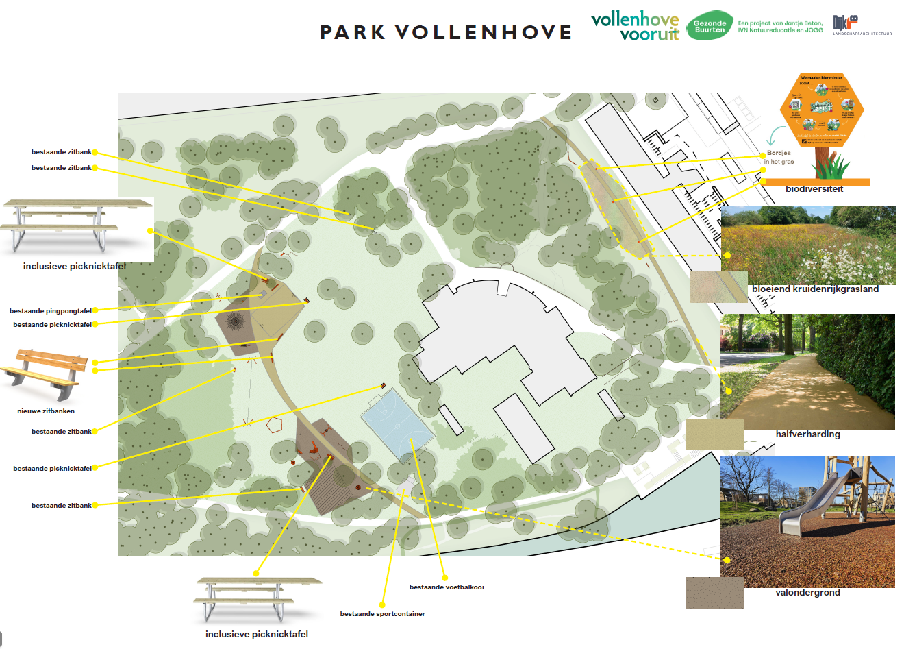 Vollenhove is een groene wijk met lange hoge flats, waar ook veel gezinnen met kinderen wonen. Voor veel mensen is het groen in de buurt hun achtertuin, een plek om te spelen, ontmoeten en van het groen te genieten. Er is een aantal kleinere speelplekken in de buurt, er is een voedselrandbos en er is één grotere speel- en sportplek in het park. Veel mensen komen daar graag, maar er zijn ook wensen om het nog mooier en beter te maken. Bijvoorbeeld een toffe speelplek erbij, een plek om elkaar te ontmoeten of juist in alle rust van het groen te genieten. Maar hoe kunnen we dit het beste doen? Daarvoor hebben we de ervaring en wensen van alle buurtbewoners nodig!