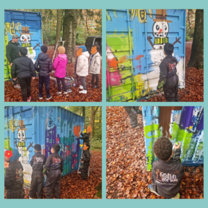 Op dinsdag 29 oktober en woensdag 30 oktober 2024 kregen de kinderen van het Kinderatelier een graffiti workshop van Graffiti for You. Op dinsdag gingen ze aan de slag met een inspiratiesessie. Nadat het ontwerp voor de sportcontainer in Bospark Vollenhove gemaakt was, gingen ze aan de slag! Op woensdag mochten ze zelf het ontwerp op de sportcontainer spuiten. Wat is het mooi geworden! Loop eens langs de sportcontainer om de kunst te bekijken.