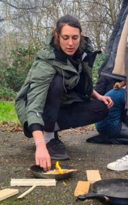 Vuur maken is altijd spannend. Het is goed om kinderen daar op een educatieve manier mee kennis te laten maken. De kinderen leren eerst over vuur en hoe ze met een mes moeten omgaan om kleinere houtjes te maken. Daarna gaan ze in tweetallen oefenen en samenwerken om houtjes klein te maken. Met watjes, kleine stokjes en een vuursteentje maken ze vervolgens zelf vuur. Ze zijn heel trots als het is gelukt. Ook leren ze het vuur weer goed uit te maken.
