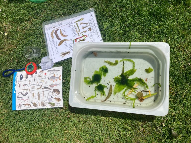 Waterdiertjes scheppen is niet heel moeilijk, maar je moet wel even weten hoe het moet. Natuurcoach Gonny legt het uit aan drie zusjes: ‘Doe het netje in het water net langs de waterkant, draai achtjes en herhaal dat vier keer. Vlak boven de bodem, maar niet te diep’. Met geconcentreerde gezichtjes gaan de kinderen aan de slag. Een van de meisjes haalt het net op en kijkt erin: ‘Wow wat veel beestjes’, roept ze uit.