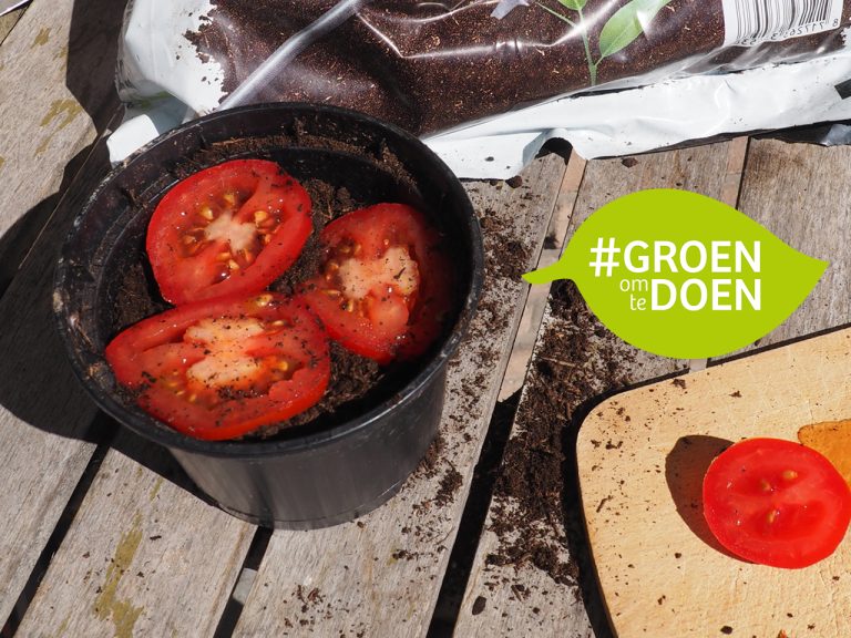 Een tomatenplant zaaien zonder zaadjes? Dat kan! Je hebt alleen een tomaat nodig. Of gebruik een stukje dat je anders toch weg zou gooien. Duurzamer kan niet.