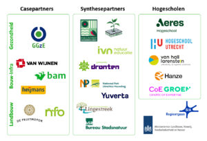 De vier hogescholen werken binnen het onderzoek samen met casestudiepartners: De Fruitmotor, NFO (Landbouw), Bam, Van Wijnen, Heijmans (Bouw-Infrastructuur) en GGzE (Gezondheid) en overkoepelende deelnemers: Collectief Natuurinclusief, Stichting Steenbreek, IVN Natuureducatie, Gemeente Dronten, Nationaal Park Utrechtse Heuvelrug, Yuverta, Agrarische Natuur Vereniging Lingestreek, Bureau Stadsnatuur.