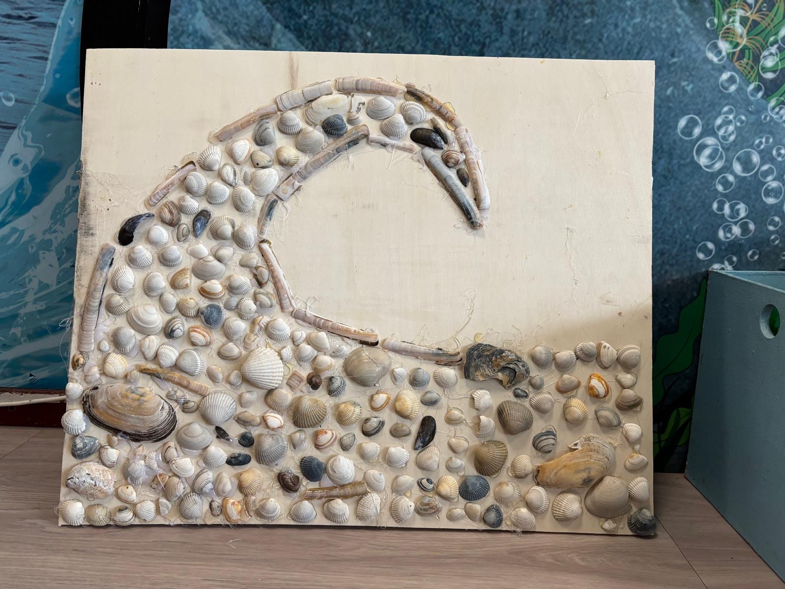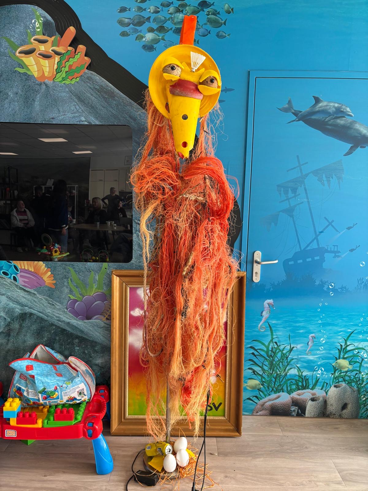 De kunstwerken zijn divers: Een enorme pelikaan van een vissersnet, een pillon en piepschuim. Met daarbij de slogan: ‘Neem je afval mee, daar red je de pelikaans leven mee’. Een golf en een krab van schelpen. Een kunstwerk met een belangrijke boodschap: Neem je plastic mee, red de zee. En een stormvogel van jutsels.