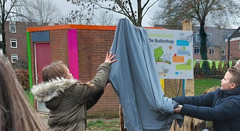 De groei en bloei van het bosje gaan de leerlingen goed in de gaten houden en zodra er iets te oogsten valt zal de hele school ervan meegenieten!
