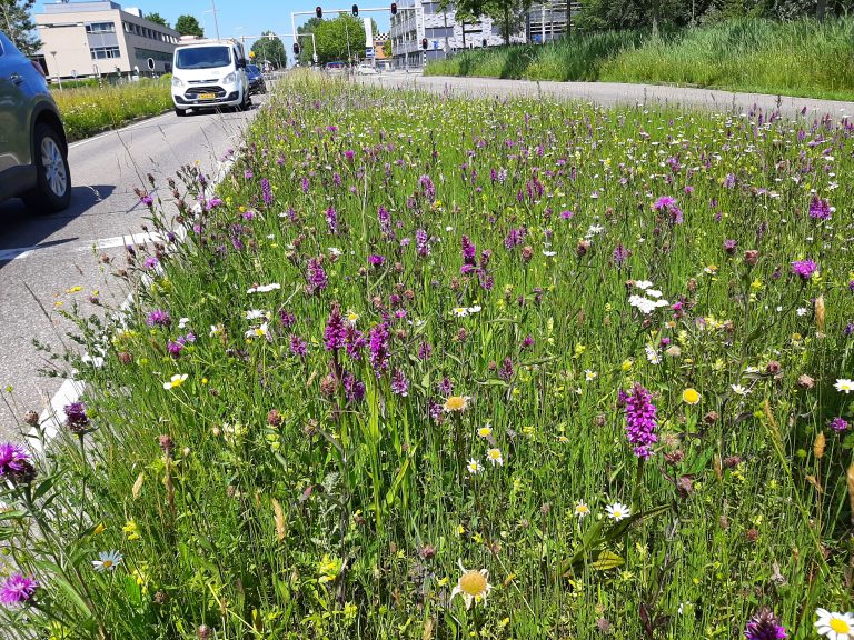 Na het Heempad volgde ecologisch slootkantbeheer en ecologisch bermbeheer. ‘Gouda is een natte gemeente met rijke grond, dat maakt het niet makkelijk. Toch hebben we de prachtigste bermen met wilde orchideeën zoals de rietorchis en bijenorchis. Voor goed bermbeheer is continuïteit in tijd en variatie in ruimte nodig. Elke vier jaar – na de gemeenteraadsverkiezingen – neemt André de nieuwe wethouder mee op pad om te laten zien hoe belangrijk ecologisch beheer en biodiversiteit in de stad is. Ook andere gemeenten komen vaak een kijkje in de keuken nemen. ‘Er is steeds meer aandacht voor. Ik laat zien hoe wij het aanpakken en vertel hen dat je een lange adem moet hebben én het verhaal goed moet vertellen. In het begin krijg je vaak klachten, dat de bermen niet meer strak gemaaid zijn. Dan zit er ook nog geen bloemetje in, dat moet nog ontwikkelen. Als het er weer mooi uitziet en mensen beter snappen waarom je het zo doet, worden de klachten ook weer minder.’