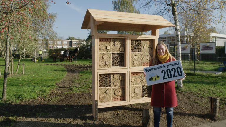 De prijsuitreiking ziet er vanwege de coronamaatregelen anders uit dan andere jaren, maar de prijzen blijven hetzelfde. Afgelopen week kreeg de gemeente een insectenhotel, 50m2 bloembollen, 50m2 bijvriendelijke planten en ecologisch advies cadeau. Het hotel, de bollen en de planten komen in het Griftpark te staan, dat daarmee nog bijvriendelijker wordt.
