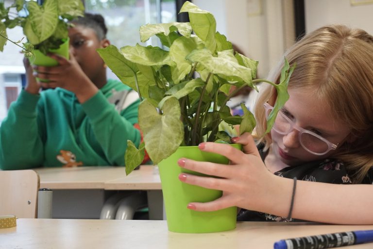 Ook kregen de kinderen een gastles over hun eigen BinnenBos. Ze leerden hoe ze hun plant moeten verzorgen en waarom die planten in de klas eigenlijk belangrijk zijn. “Het zorgt voor meer zuurstof in de klas en het maakt het wat minder saai”, zegt een van de leerlingen. Ook leerden de kinderen hoe ze stekjes kunnen maken, om zo nóg meer planten in de klas te krijgen.