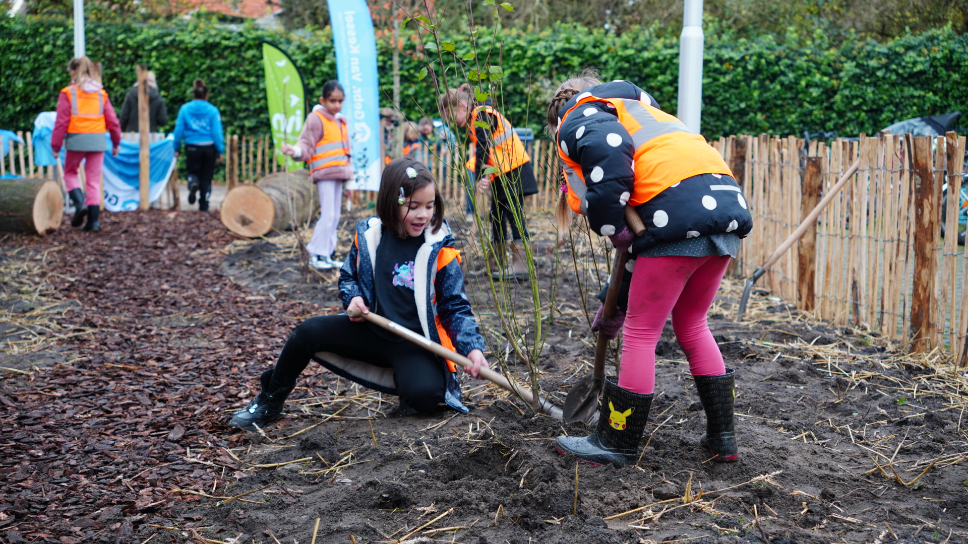 The first group of Tiny Forest Rangers plant the Tiny Forest themselves with the whole class! The Tiny Forest Rangers walk around the forest and observe: what do they see, what do they hear, what do they feel, what do they smell? They fill in the Tiny Forest checklist and carry out minor maintenance tasks. They clean up litter and remove weeds that are higher than the trees.
