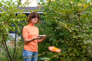 De tuin van het nieuwe huis van Cécile Geraads uit Zeist moest nodig onder handen worden genomen. ‘Ik wilde een groene tuin met meer bomen, struiken en bloemen. Liefst alleen biologisch en inheems, omdat dat goed is voor de vogels en de insecten. Daarom schafte ik in 2022 het Tuiny Forest pakket aan. Nu heb ik een lekkere wilde inheemse tuin met mega veel vogels en bijen.’