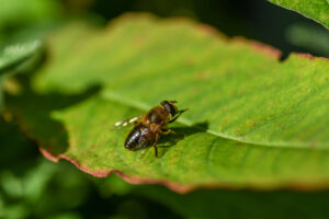 Goed voor de biodiversiteit In de rest van de tuin heb ik ook vooral inheemse, biologische en gifvrije planten staan. Hier komen veel bijen en andere insecten op af. Kijk, daar zit een vlinder! En daar in de hoek hangen twee cocons.
