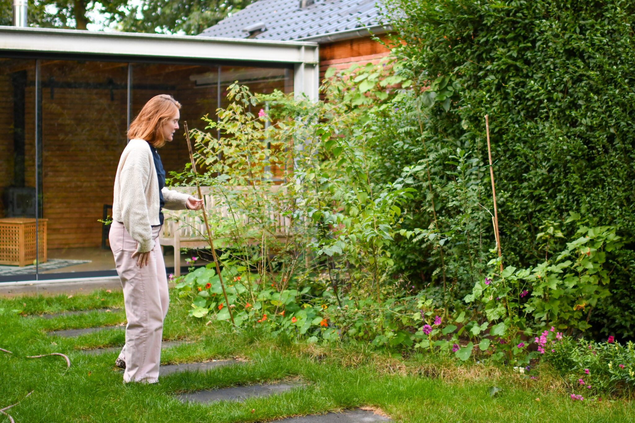 In deze tuin heb ik leren loslaten. Van nature ben ik een beetje perfectionistisch, maar nu hoeft het allemaal niet meer zo netjes. De natuur doet gewoon z’n werk. Ik kijk naar de planten en volg hoe ze groeien. Het liefst zit ik hier achterin op het bankje. Even alleen in alle rust en uit het zicht genieten van het groen.