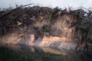 Water onder de oeverwand voorkomt dat wezels, nertsen of een bunzing het nest slopen en leegroven. Vrijwilligers van de ijsvogel groepen graven de grond af als er bij warm weer geen water meer onder het nest van de overwand staat. De nestplekken zijn vaak omgevallen bomen, zandige of leemachtige steile oeverwanden waarin op een hoogte van tussen de 90 tot 1.80 cm een holte met een doorsnede van 5 cm wordt gegraven.