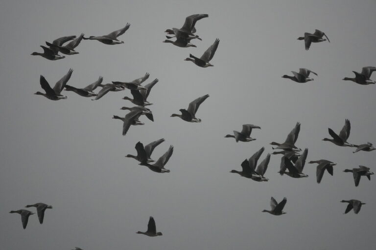 Vogelkenner Jos Bredek nam een groep leden van IVN Aa en Hunze mee voor een wandeling op zoek naar ganzen en ander pluimage. Al vrij snel zagen we grauwe gans, kieviten en op een bult een torenvalk, die alras opvloog en in de lucht stond te ‘bidden’.