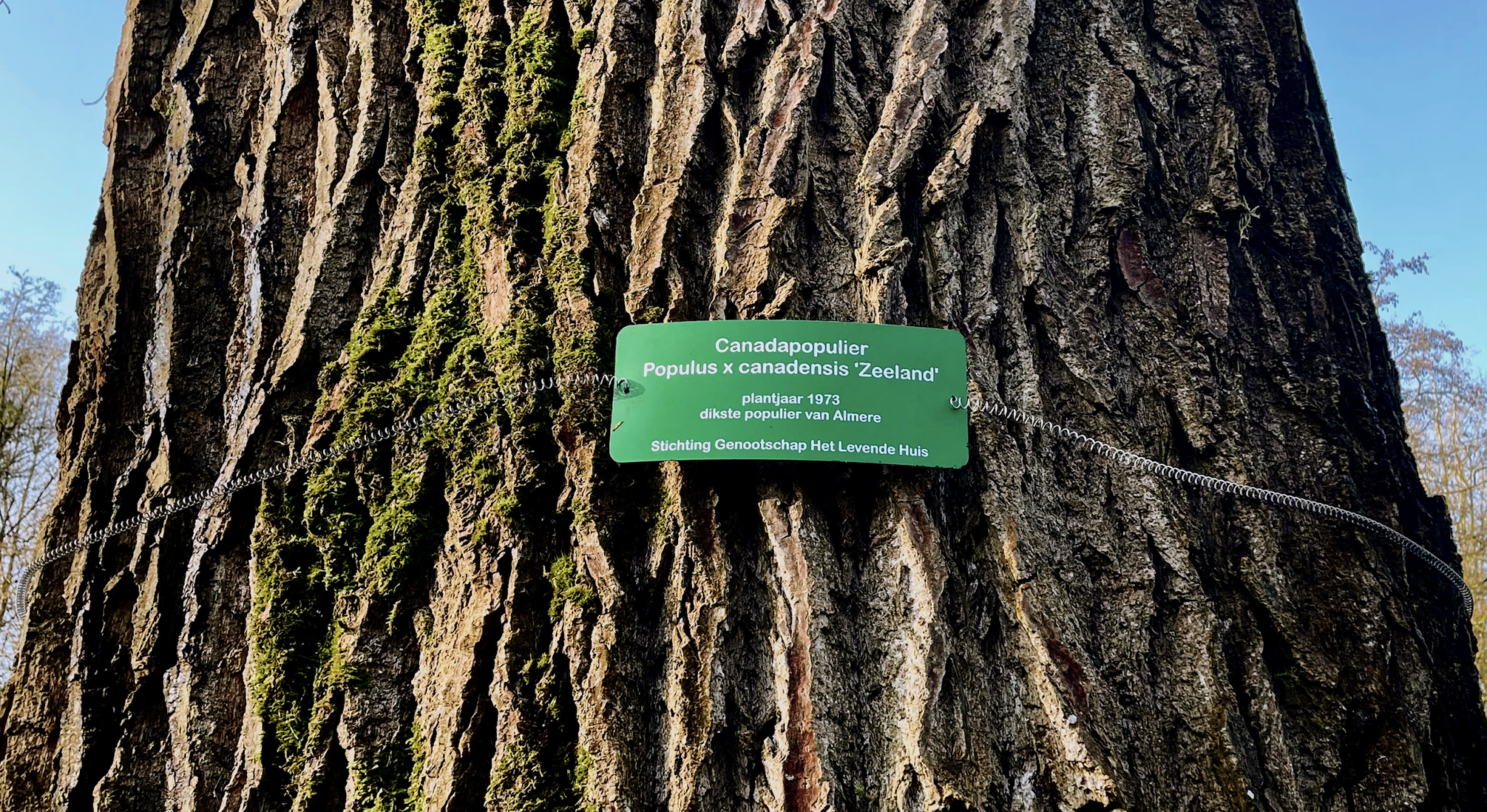 De verhalen van deze dikke populieren en van ca. 100 andere bijzonder Almeerse bomen vind je in het boek van het Genootschap Het Levende Huis en dat boek is HIER gratis te downloaden.