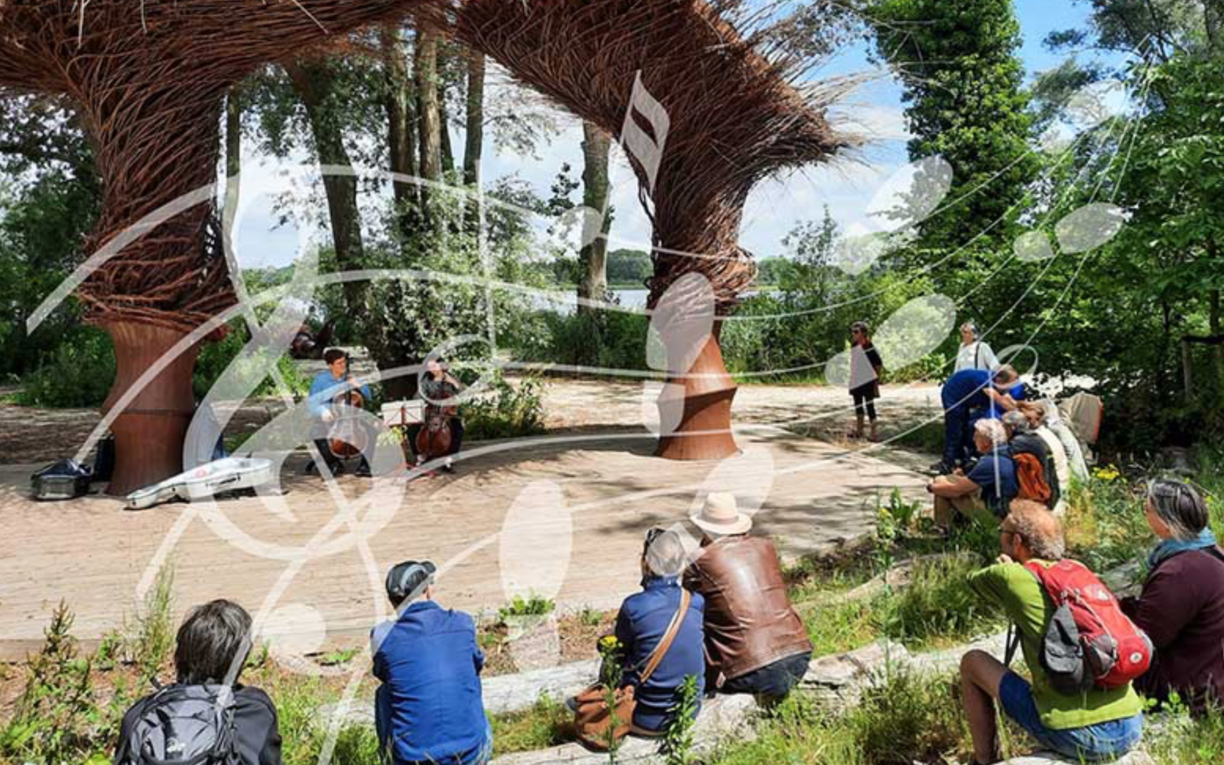 Op de muziekwandelingen gaan we op stap met een ervaren IVN-gids die van alles vertelt over het gebied, planten, dieren en de historie. Onderweg worden we op verschillende momenten verrast door miniconcertjes klassieke muziek. Harp, luit, gitaar, accordeon, viool, het kan van alles zijn. Mooi repertoire, heerlijk om naar te luisteren. Wie er spelen? Dat is steeds een verrassing…