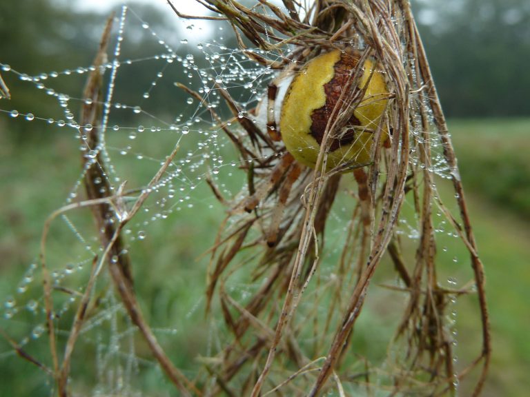 Ik loop op een zonnige dag langs de Poeloever en in mijn ooghoek zie ik een opvallend spinnetje. Het is bedekt met allemaal kleine bultjes en hoewel ik een fanatiek lezer van flora- en faunagidsen ben (ja, die mensen bestaan) roept deze verschijning niets bij me op.