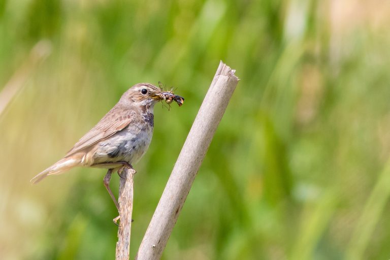 Als er ’s winters geschaatst kan worden, is dit een goede opstapplaats. Het water van De Poel bevriest altijd snel, omdat het zo ondiep is. Ik neem het fietspad rechtsaf en geniet meteen van de bloeiende moerasplanten. Ook lijk ik al bloeiend riet te zien, maar ik weet dat riet pas in augustus gaat bloeien. Het moet rietgras zijn. Dan even stevig doortrappen, omdat de brug vrij hoog is. Van die hoogte heb ik vaak geprofiteerd, want voor schaatsers is dit de verbinding tussen de Amstelveense Poel en de Kleine Poel. Bovenop even stilstaan om naar de zwaluwen te kijken en van het uitzicht te genieten. De energie die het me koste om boven te komen, krijg ik weer terug bij de afdaling. Vanuit het kleine slootje rechts wordt luid gekwaakt door groene kikkers. Aan het eind rechtsaf en dan iets voorbij het huis kan ik mijn fiets parkeren, zodat ik lopend het gebied in kan gaan.