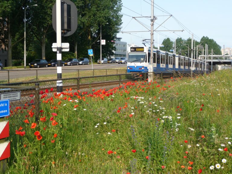 In reguliere bermen overheersen meestal de grassen. Dat komt door het tijdstip van maaien. Als je middenin het groeiseizoen maait, dan zijn de grassen in het voordeel, omdat die zich snel herstellen na een maaibeurt. De berm van de Beneluxbaan wordt dus niet in juni gemaaid. De bloemen krijgen de tijd bevrucht te worden en zaden te vormen.