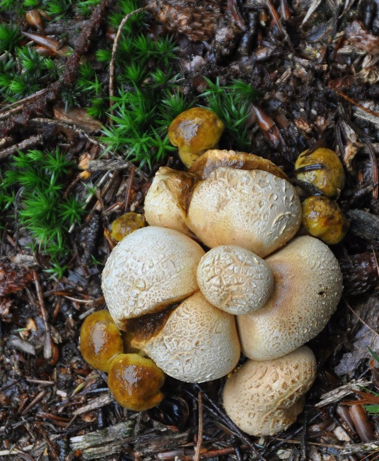 De berken werken samen met vele soorten verschillende paddenstoelen, die elk hun eigen rol hebben. Bij de berken langs de Poel heb ik in de loop van de jaren ruim twintig verschillende symbionten aangetroffen. Men zegt dat eiken met meer dan vijftig verschillende soorten paddenstoelen samenwerken. Alle boleten, het geliefde Eekhoorntjesbrood is ook een boleet, werken samen met bomen, op één enkele uitzondering na: de Kostgangersboleet. Dat vervelende heerschap parasiteert op de al genoemde Gele Aardappelbovist.