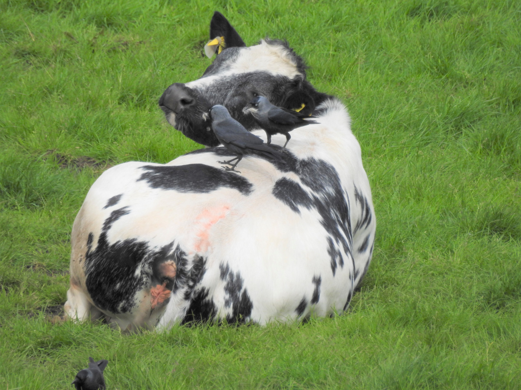 Zeker 28 jaar genoten wij in voorjaar en zomer van de koeien van boer Jan tegenover ons huis. In de vroege ochtend en avond rond zessen begon steevast het loeien om boer en brood. Jan molk zijn beesten met de hand. Met het stijgen der jaren verving hij zijn rijpe dames door jongvee, waar hij minder omkijken naar had. Inmiddels hebben ook zij plaats gemaakt voor andere koeien, van een andere boer. De nieuwkomers moeten het alleen met gras doen, een teleurstelling voor ooievaars, eenden, pauwen en kauwen die graag deelnamen aan de dis van onweerstaanbare schillen en oud brood. De kauwen kwamen ook voor iets anders: om de vacht van de koeien te plukken, zodra die lagen te herkauwen. Lekker zacht nestmateriaal!