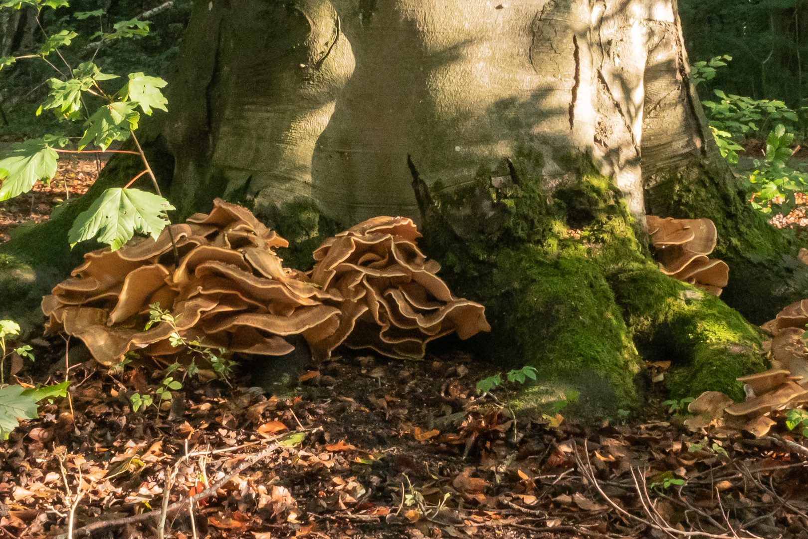 In het Amsterdamse Bos, niet ver van ons huis, staan drie monumentale beuken die al veel ouder zijn dan het bos zelf. Het stuk bos ten zuiden van de A9 is in de jaren vijftig aangeplant, terwijl de beuken al meer dan honderd jaar oud zijn. Ik bezoek de plek van de drie beuken met enige regelmaat in de paddenstoelentijd, er is altijd veel te zien rondom deze bomen. Er groeien bijvoorbeeld groene knolamanieten, die in symbiose met de boom leven. Voor de mens dodelijk giftig, maar voor de boom van levensbelang. Verder groeien er allerlei melkzwammen en russulasoorten, allemaal dragen ze bij aan de gezondheid van de oude beuken. Naast deze symbionten groeien er allerhande opruimers, zoals de langsteelfranjehoed en de nevelzwam die hier beiden in grote groepen te bewonderen zijn. De groene glibberzwam is een kostbaar kleinood dat je hier ook kunt vinden. De status van dit kleine geelgroene paddenstoeltje is nog niet helemaal opgehelderd. Het zou kunnen dat dit zwammetje ook in symbiose leeft met de beuken, maar er gaan ook geluiden op dat het paddenstoeltje parasiteert op de wortels van de beuk.