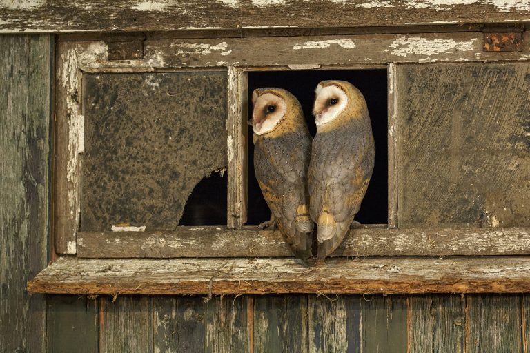 De schuur waar de vogels zitten is aardedonker, maar uit die duisternis komt een indringend hissen. We zien ze niet, maar ze zijn er wel. Het hissen klinkt onheilspellend, maar in de oren van de oudervogels is het een roep om eten. De kinderen hebben honger.