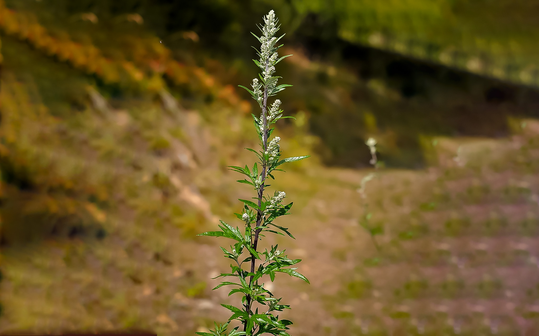 Wij hebben hier een achttal inheemse Artemisia’s, waarvan Bijvoet misschien wel de bekendste is. Als je de blaadjes van de Bijvoet fijnwrijft dan komt er een bijzondere geur vrij, die een beetje naar lysol leunt. Volgens Plinius, een Romeinse geschiedschrijver, deden Romeinse soldaten Bijvoet in hun schoenen om het marcheren op die eindeloze heerwegen een beetje dragelijk te maken. Absinthine uit een andere alsem, de Absintalsem, is weer ontstekingsremmend. Extracten van deze Artemisia zitten ook in vermout en absint. Laatste drankje had lang een slechte naam. Uiteindelijk bleek het gewoon de alcohol te zijn, die de oorzaak was van de vermeend hallucinerende werking.