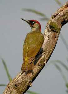 De groene specht hoor ik vaak als ik bij Bovenkerk het bos in loop. Het kenmerkende lachende geluid kan je met geen enkele andere vogel verwarren. “Lachende specht” wordt de vogel ook wel genoemd, hoewel “grondspecht” ook een goede bijnaam zou zijn. De groene specht leeft voornamelijk van mieren en daarvoor is hij vele uren van de dag aan de grond gekluisterd. Mocht je ooit deze specht in je kijker krijgen, dan kun je mooi de rode en zwarte kleuren van zijn kop zien.
