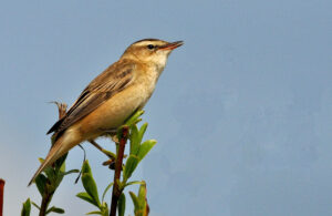 De vogel die het best bij de titel van deze column past is natuurlijk de rietzanger. Half april komt deze vogel terug van het overwinteringsgebied in Afrika om onze rietkragen op te vrolijken met zijn gezang. In het Schinkelbos is de rietzanger een talrijke broedvogel evenals langs de Grote Poel. Merkwaardig genoeg broedt deze vogel niet langs de Kleine Poel. De rietzanger is met de markante wenkbrauwstreep makkelijk te onderscheiden van andere rietbewoners. De bosrietzanger, die pas in de tweede helft van mei uit tropisch Afrika terugkeert, heeft wat mij betreft de mooiste zang. Ik zou het diertje zelfs het predicaat “eloquent” mee willen geven. Heel gevarieerd en vaak andere vogels imiterend. In het Schinkelbos is de bosrietzanger een redelijk talrijke broedvogel, die als twee druppels water lijkt op de kleine karekiet, die een wat monotone zang heeft. Langs de boorden van zowel de Grote als de Kleine Poel is deze karekiet een algemene broedvogel. De rietgors is ook algemeen aanwezig binnen onze gemeentegrenzen. Zijn zang, of is het meer zijn roep, is erg markant. Als ik op de Kippenbrug bij de Bovenkerkse ingang van het Amsterdamse Bos sta en ik kijk richting Aalsmeer, dan hoor ik de gors bijna altijd wel zing-roepen. Met zijn kenmerkende zwarte kop is het een makkelijk herkenbare rietbewoner.