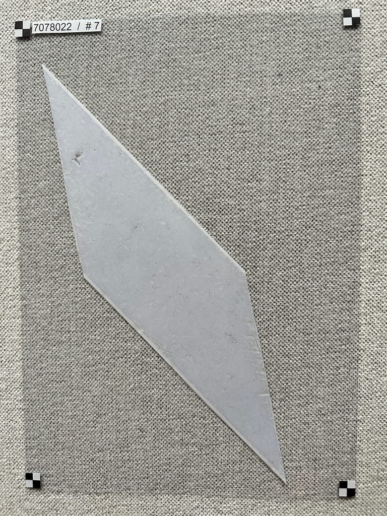 Daarin lieten ze ook zien hoe de synthetische vezels op de ingeleverde lintrolvellen geïdentificeerd konden worden door een computerprogramma. Met het blote oog zie je de vezels nauwelijks op de vellen. Hierdoor vroegen sommige burgeronderzoekers zich af, waaronder ikzelf, of er nou daadwerkelijk zoveel microplastics vrijkomen tijdens het wassen. Toen we een sample zagen (zie hieronder) waarvan de microplastics door de computer waren geïdentificeerd, waren de twijfels al snel weg. Het bleek dat op zo’n vel duizenden microplastics aanwezig zijn die met het blote oog niet te zien zijn. Dit is wellicht zelfs minder dan wanneer geen waszak wordt gebruikt want zoals Guppyfriend beweert, voorkomt de waszak dat vezels sneller afbreken.