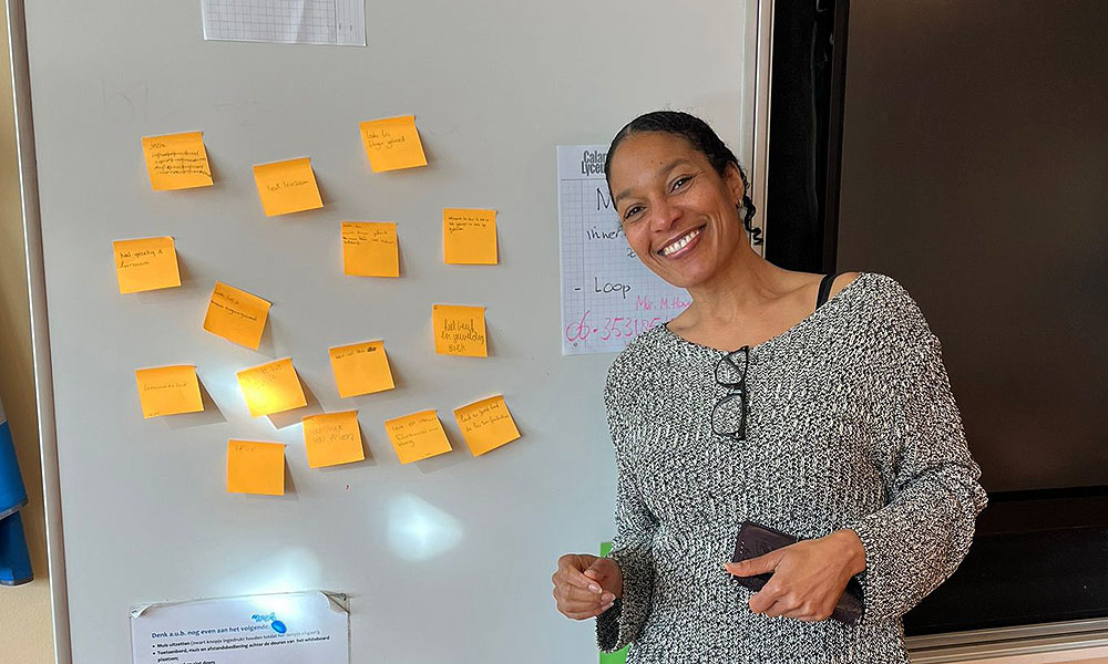 Op uitnodiging van leerkracht Juanita Benschop gaf Marjori Hong (IVN), trainer Stressmanagement & Vitaliteit, een interactieve sessie over stressreductie. Haar werkplek is zowel de yogamat als de natuur. “In het dagelijks leven is het zo normaal om maar door te rennen,” vertelt Marjori “dat je vaak pas merkt dat je jezelf voorbijloopt, wanneer je lichamelijk of mentaal in de knoop komt te zitten. Het is belangrijk dat je dan weet wat je eventueel zelf kunt doen.”