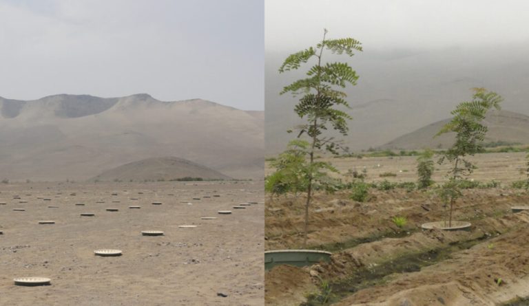Het Nederlandse bedrijf Groasis helpt wereldwijd gedegradeerd land te herstellen met hun Waterboxx oplossing. ”Dit is een intelligente, omgekeerde kunststof emmer, met een achtvormige opening in het midden, waaronder je een of twee boompjes of plantjes in de grond kunt planten.”