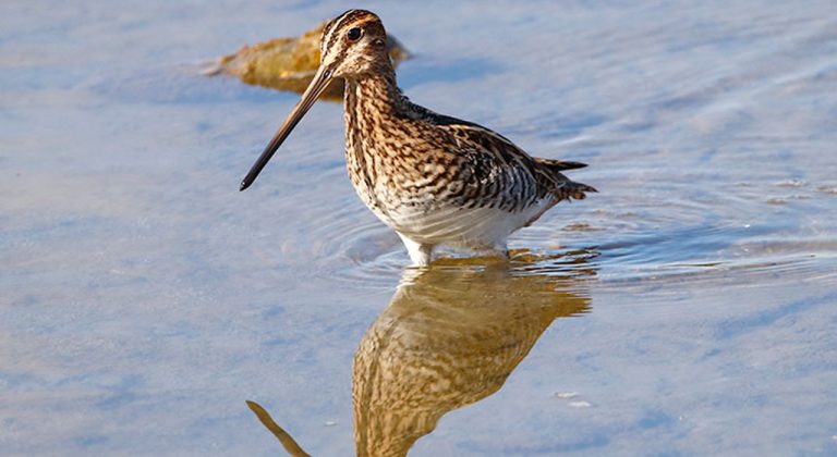 Beluister wat de watersnip roept als hij wegvliegt en het blatende geluid tijdens de baltsvlucht.