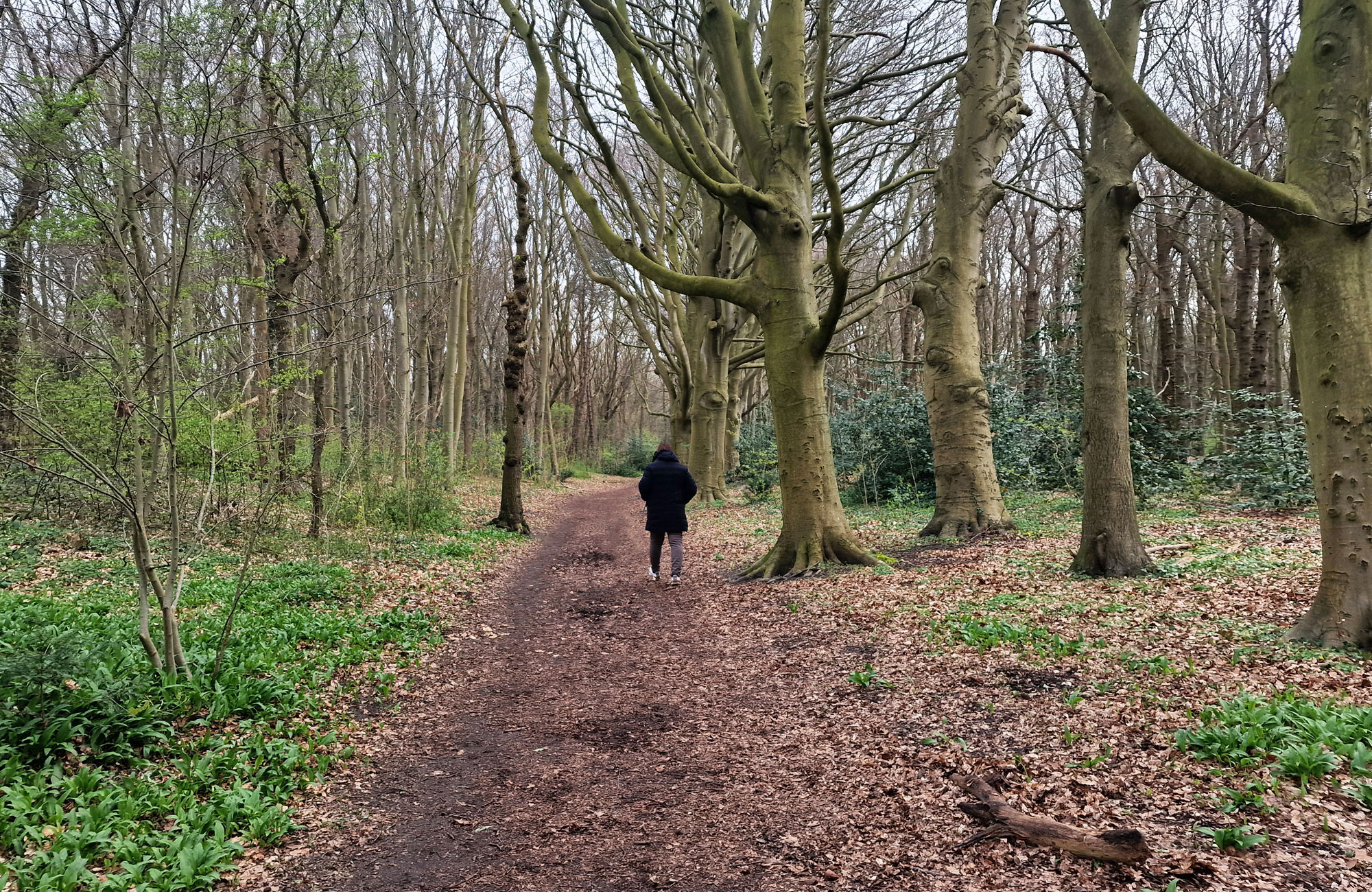 Buurtbewoners tijdens hun dagelijkse boswandeling