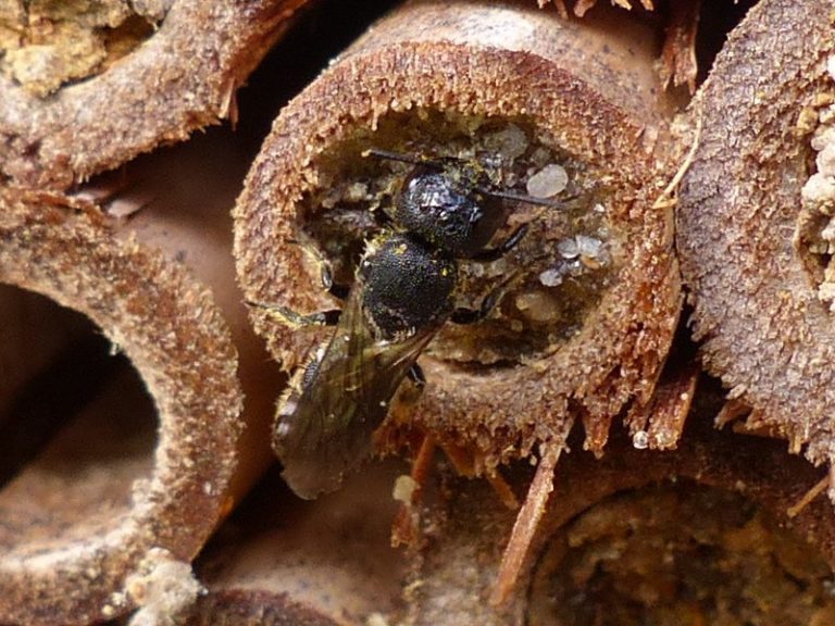 Begin mei was het vooral heel druk met rosse metselbijen. Hoewel ze al zoemend links en rechts langs je hoofd vliegen, hoef je niet bang te zijn voor een bijensteek. Deze bijtjes steken niet. Metselbijen danken hun naam aan het feit dat ze bevochtigde aarde gebruiken als tussenwandje voor hun broedcellen. In elke broedcel legt de bij een voorraadje stuifmeel en nectar aan en legt daar vervolgens een ei bij. Nadat de bij zo een rijtje nestcellen heeft gevuld, sluit ze de gang af met een prop modder.