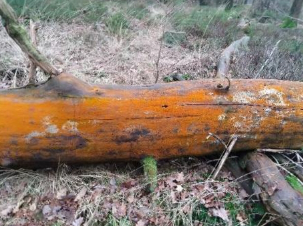 Je ziet hem meestal op liggend dood hout, vooral op eik. Deze Portugese alg heeft heel veel carotene kleurstof in zich, die het groene chlorofyl onzichtbaar maakt. Het is een draadalg die zacht aanvoelt.