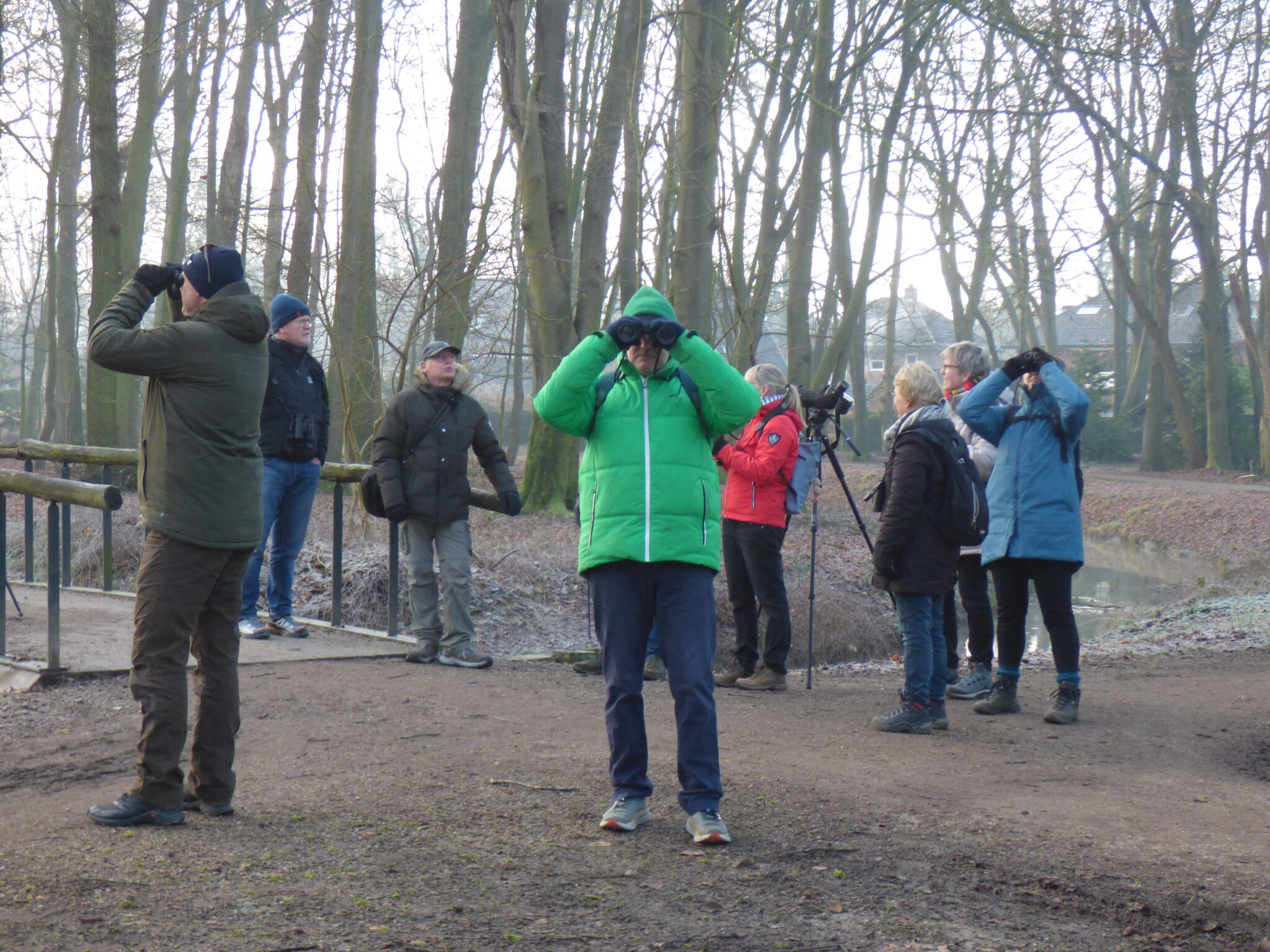 Op de theorieavond bestuderen we afbeeldingen van mezen, schatten gewichten en lengtes, en oefenen vogelgeluiden. In de praktijk zet een gaai ons op het verkeerde been en bootst perfect een buizerd na. Via verrekijkers en telescopen genieten we volop van een zwarte specht, plakspecht (=boomklever), grote-, middelste- en kleine bonte specht. De zwarte klinkt als een mitrailleur. De kleinste produceert het tikkende geluid van een naaimachine.