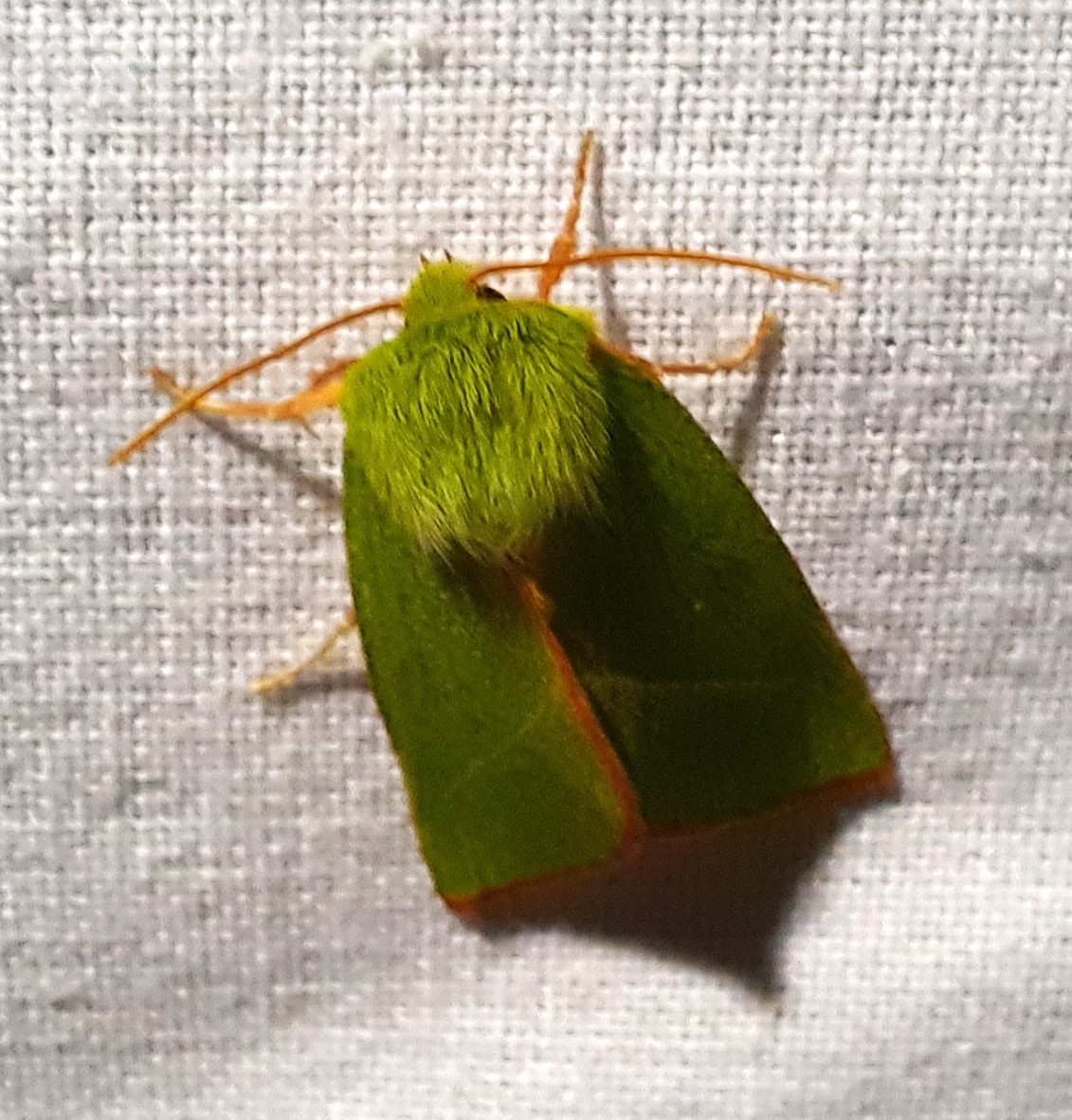Later op de avond verscheen een appelgroene nachtvlinder. Van deze bijzondere kleur werden de mensen ook enthousiast. Bij het fotograferen zag je een dikke groene haardos op het vlindertje. Wat een grappig beestje, deze Zilveren groenuil.