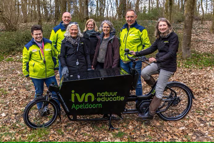 En meteen een mooie promotie van de spiksplinternieuwe IVN bakfiets.