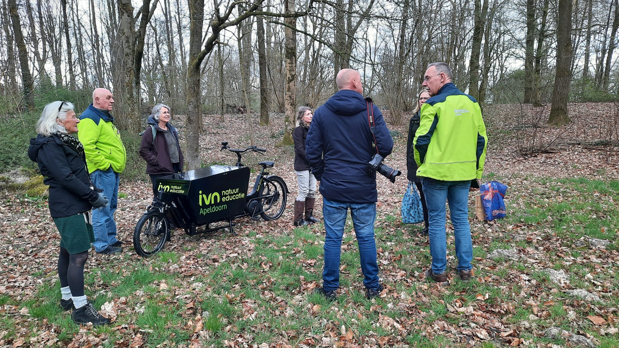 En meteen een mooie promotie van de spiksplinternieuwe IVN bakfiets.