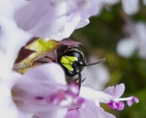 Dan heb je kans om de kleine Gewone maskerbij te vinden. Deze zat verstopt in de bloemen van de tijm, zo klein is dit solitaire bijtje.