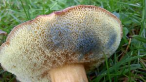 De steel is roodgekleurd tot het bovenste stukje, dit is geel. Boleten kun je vinden in het gras of langs de rand van een border. Er moeten wel bomen in de buurt staan. Boleten werken namelijk samen met loofbomen. De schimmel levert mineralen en krijgt van de boom suikers terug. Een mooie win-win relatie.