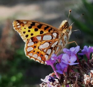 Een soort die minder algemeen is maar steeds meer wordt gezien op de binnenlandse zandgronden is de Kleine parelmoervlinder. Wanneer je goed naar de onderkant van de vleugels kunt kijken, begrijp je waaraan hij zijn naam heeft te danken.