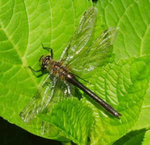 De Smaragdlibel is een mooie verschijning met prachtige groenen ogen en lijf. Deze libel rust weleens uit op een blad.